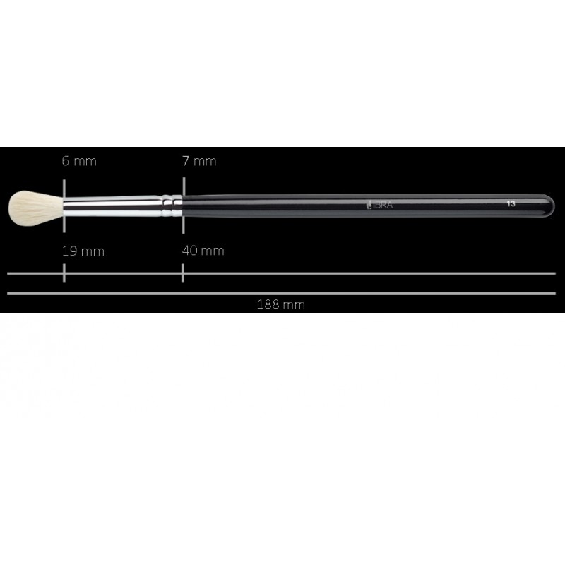 Το Brush No 13 της Ibra είναι κατάλληλο για εφαρμογή σκιών, ενώ η στρογγυλεμένη άκρη του είναι ιδανική για ανάμειξη και σβησίματα των σκιών. Η φυσική τρίχα κατσίκας βοηθά στην εύκολη και ομοιόμορφη εφαρμογή των σκιών